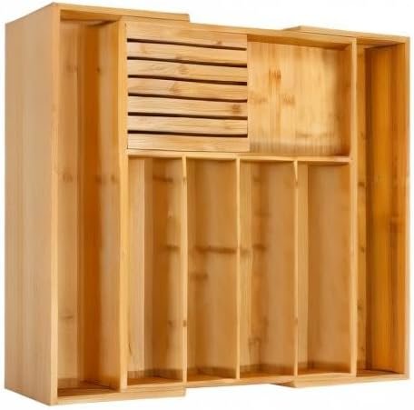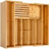 1. VaeFae bamboo expandable silverware drawer organizer with removable knife block
